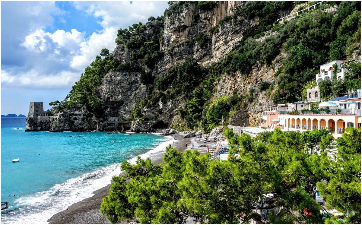 È un luogo davvero incantevole: lontano dalla folla di Positano, incorniciato da un mare blu cobalto intenso e da una frangia di pini.